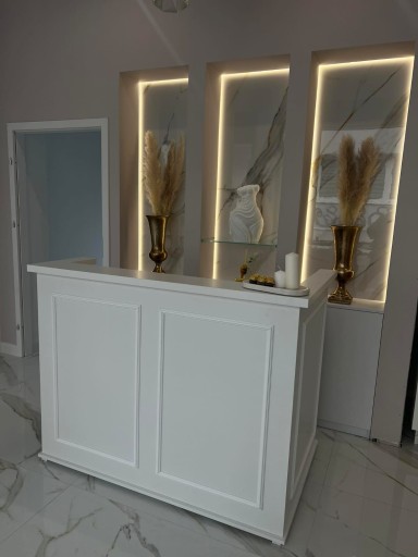 Oferujemy nasz najnowszy model recepcji ze sztukaterią oraz możliwością umieszczenia logo firmy ze złotej lub srebrnej pleksi lustrzanej.