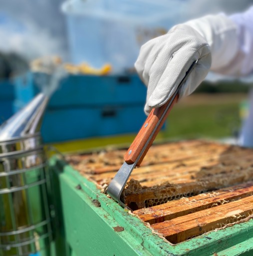 Poręczne dłuto nierdzewne w oprawie, wyposażone w specjalnie wyprofilowany hak szczególnie użyteczny przy wyciąganiu ramek. Poręczne narzędzie idealnie sprawdzi się w twojej pasiece! Wymiary narzędzia oraz odpowiednio wyprofilowane krawędzie pozwolą wygodnie użytkować dłuto podczas prac pszczelarskich.