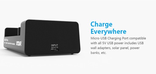 W komplecie z ładowarką XTAR MC2 Plus, otrzymujemy kabel micro USB. Do zestawu potrzebny jest zasilacz, np. do telefonu, lub komputer z wolnym portem USB. Optymalna moc ładowarki powinna wynosić 2100mA.