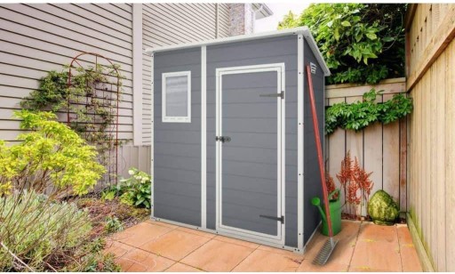 Poszukiwanie idealnej przestrzeni, która posłuży umiejscowieniu prezentowanego towaru, nie będzie żadnym problemem. Dlaczego? Domek narzędziowy KETER Manor Pent posiada 200,5 cm wysokości, 183,5 cm szerokości oraz 111 cm głębokości. Produkt nie potrzebuje dużej ilości miejsca. Jesteśmy pewni, że z łatwością wydzielisz część ogrodu, w której umieścisz nową konstrukcję. Wewnątrz domku narzędziowego KETER Manor Pent wmontowano płytę podłogową, zdolną do uniesienia 150 kg/m². Podłoga ochroni składowane przedmioty przed gryzoniami oraz zabrudzeniem. Natomiast drzwi domku wyposażono w zamek, do którego można dokupić kłódkę.