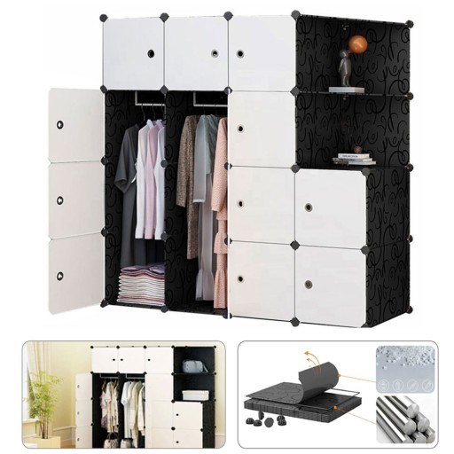 Regał modułowy do przechowywania jest wykonany z plastikowych paneli PP z metalową ramą i złączami ABS.