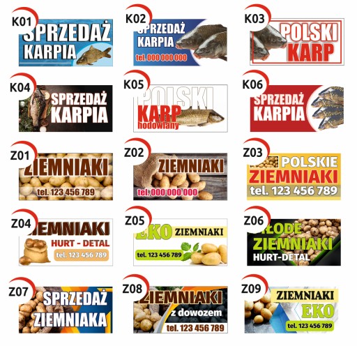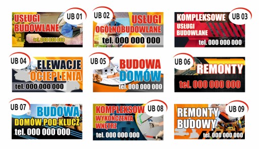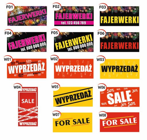 Strzałki kierunkowe, nazwy, numery, adres - w zależności od wzoru. Możemy również umieścić Twoje hasło reklamowe na banerze. Ważne, aby hasło mieściło się w jednej linijce, w innym przypadku będzie nieczytelne.