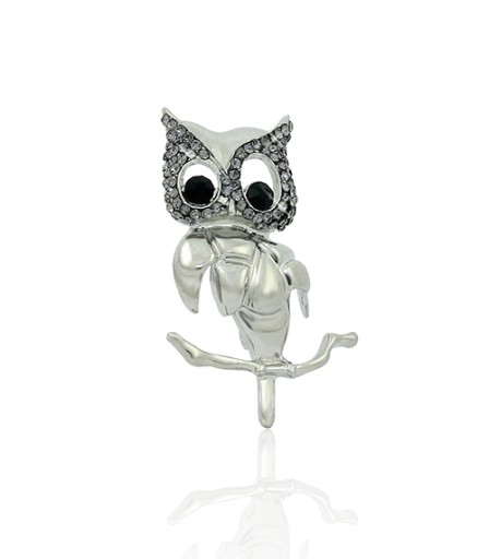 BROSZKA SOWA NA PATYKU CYRKONIE