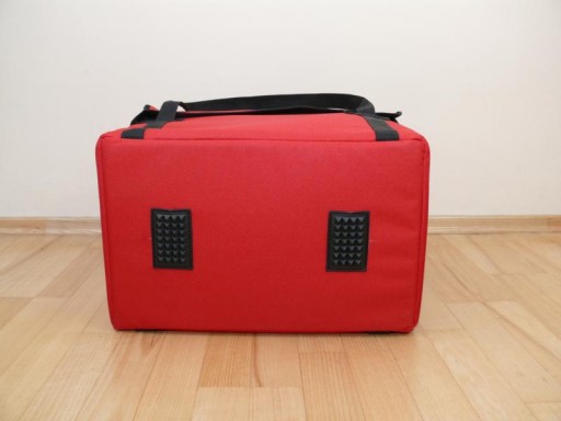 - Specjalną, grubą (minimum 20mm) termoizolacyjną piankę techniczną - nie jest to pianka tapicerska, która tylko "pompuje" torbę nie dając żadnej izola