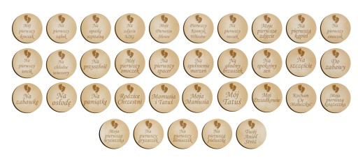 3. 6szt kółek grawerowanych do wyboru z 35 podanych poniżej - jeśli nie będzie wybrane, wybieramy losowo te które najczęściej są zamawiane