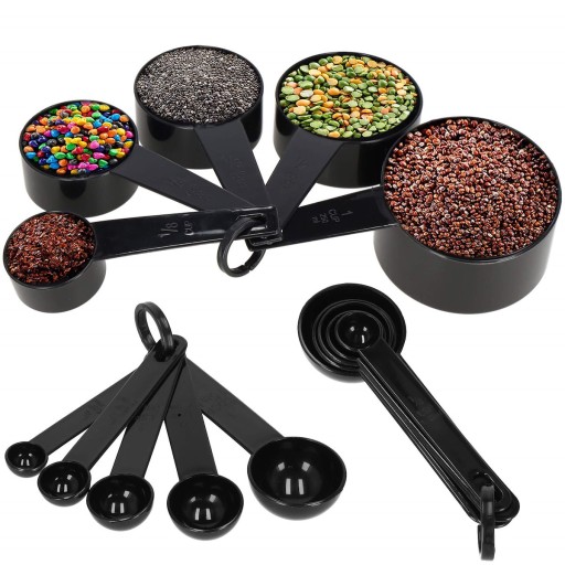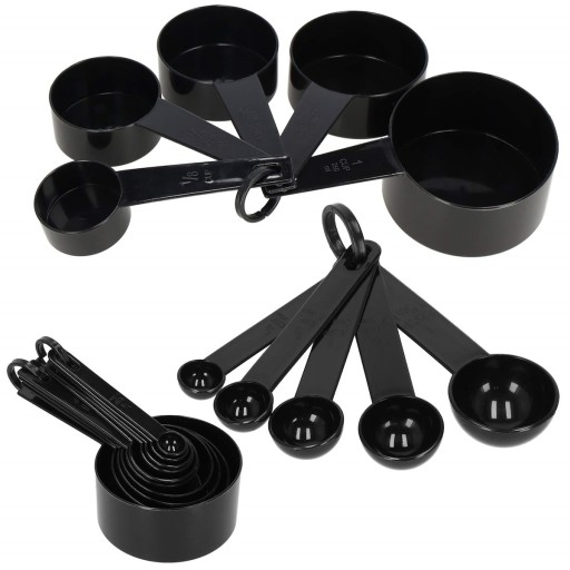 10 miarek podzielonych na dwa komplety, opartych na systemie przechowywania jedno w drugim, zajmują bardzo mało miejsca i są bardzo praktycznym i przydatnym kuchennym gadżetem.
