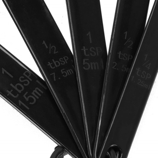 Dzięki okrągłym brelokom, na których zaczepione są poszczególne miarki masz każdy rozmiar zawsze pod ręką, znajdziesz je bez kłopotu oraz masz możliwość powieszenia ich np. na haczykach, obok innych kuchennych przyborów wiszących na dedykowanych kuchennych drążkach.
