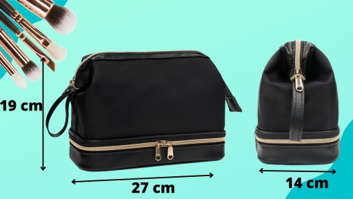 - ✅Elegancka - wysokiej jakości materiał, górna część kosmetyczki wykonana jest z łatwego do utrzymania czystości nylonu , natomiast dolna część z ekologicznej skóry. Elegancji kosmetyczce dodają wysokiej jakości zamki błyskawiczne w kolorze złota
