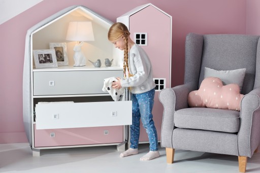 Specjaliści Konsimo wiedzą, że najważniejsze w dziecięcym pokoju jest bezpieczeństwo. Zestaw meble dla dziewczynki domki różowe 4 elementy został zaprojektowany i wyprodukowany w Polsce. Wyróżniają się niezwykłym designem oraz jakością. Pryzma daszku jest w stanie wytrzymać obciążenie, aż do 120 kg. Dzięki temu meble dziecięce z tej kolekcji stają się bezpiecznym placem zabaw – można na nie wejść, usiąść na nich i bawić się swobodnie bez obaw! Na najwyższą jakość składają się łączenia płyt, włoskie zawiasy, okucia i bardzo gruba, dwustronnie lakierowana płyta.
