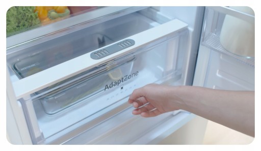 Stwórz w swojej lodówce idealne warunki do przechowywania bardziej wymagających produktów – jak mięso czy ryby. Specjalna szuflada AdaptZone daje możliwość precyzyjnego ustawienia temperatury w zakresie od -3 do 3 stopni Celsjusza, dostoswanej do potrzeb produktów, które w niej umieszczasz. Dzięki temu wrażliwe produkty znacznie dłużej zachowują swoją świeżość, smak i zapach, a także wartości odżywcze. Świeża ryba na kolację? Zakupy na cały tydzień? Żaden problem z innowacyjną szufladą AdaptZone!