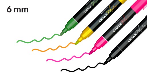 Wysokiej jakości markery kredowe idealne dla różnego rodzaju tablic. Tusz który został użyty w markerach ALLboards jest niepylący, dzięki czemu bezpiecznie mogą ich używać nawet dzieci. Struktura chemiczna płynnego tuszu sprawia że jest on dobrze przylegający do gładkich powierzchni takich jak tablice czy szkło.