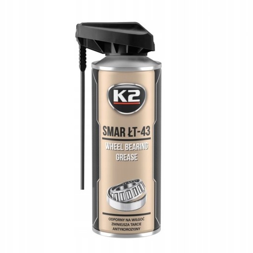 Smar litowy K2 ŁT-43 w sprayu, przeznaczony do smarowania łożysk oraz elementów maszyn przemysłowych i rolniczych. Dzięki odpowiedniej konsystencji nie ścieka z pionowych powierzchni, odporny na wilgoć, utlenianie, wstrząsy oraz siły odśrodkowe.