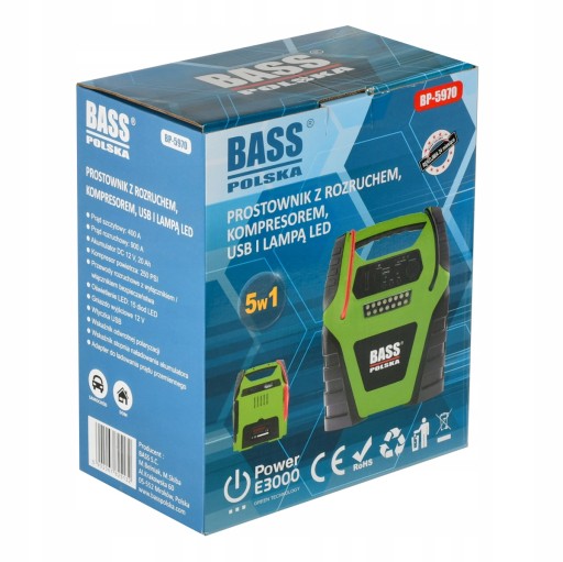 Wielofunkcyjne urządzenie rozruchowe BASS POLSKA umożliwia odpalenie samochodu, naładowanie telefonu, oświetlenie drogi i napompowanie kół.