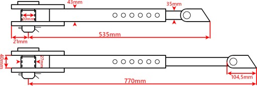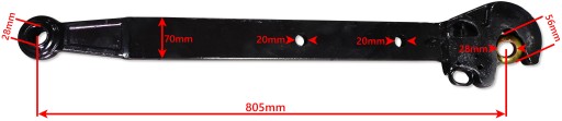 - Długość maksymalna - 725 mm (od otworu do otworu - w pozycji jak na zdjęciu powyżej)
