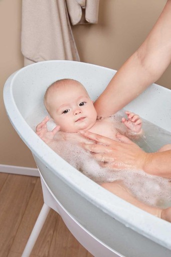 - Jest bardzo nowoczesna w swojej konstrukcji i specjalnie zaprojektowana dla małych rozmiarów dziecka. Jej stojak i wkładka dla noworodka gwarantują jeszcze więcej komfortu podczas kąpieli.