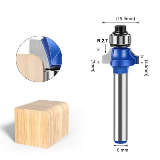 Фреза для закругления древесины 15,9 мм хвостовик 6 мм R2,7