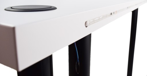 Biurko zostało wyposażone w designerską taśmę LED, która prezentuje się niezwykle estetycznie dzięki wpuszczeniu bezpośrednio w blat. LEDY posiadają aż 16 kolorów i 4 efekty świetlne do wyboru! W zestawie otrzymasz pilot do zdalnego sterowania kolorami. Dodatkowo taśma jest wodoodporna - o nic nie musisz się martwić!