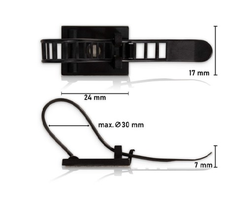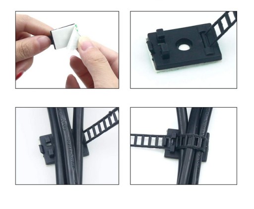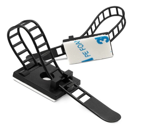 Organizer do kabli to niepozorne, ale bardzo praktyczne rozwiązanie, które rozwiąże problem poplątanych kabli. Za pomocą mocnej taśmy 3M przymocujesz go do większości gładkich i równych powierzchni, np. w samochodzie, na biurku lub koło telewizora. Uchwyt posiada opaskę zaciskową wielokrotnego użytku dzięki, której w dowolnym momencie można zmienić ilość zamocowanych kabli.