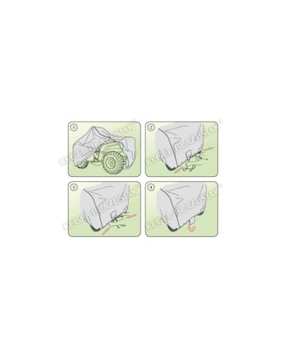 Wkładać na względnie czysty skuter białą stroną pasa środkowego do wewnątrz a następnie maksymalnie mocno zaciągnąć linkę ściągacza pokrowca i prawidłowo ją zawiązać. Tylko właściwe sznurowanie zagwarantuje wytrzymałość wiązania. Zawiąż linkę zgodnie z instrukcją, a będziesz miał pewność, że pokrowiec przymocowany jest trwale i silnie a tym samym, że Twój pojazd jest w pełni bezpieczny. Zalecane wiązanie pozwoli na mocne scalenie dwóch końców linki, jednocześnie dając możliwość szybkiego jej rozwiązania.