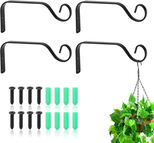 - Metalowe haki do wieszaków na rośliny są łatwe w instalacji, w zestawie okucia, łatwe wkręcanie w drewniane słupki ogrodzeniowe, słupki tarasowe lub nawet ściany wewnętrzne.