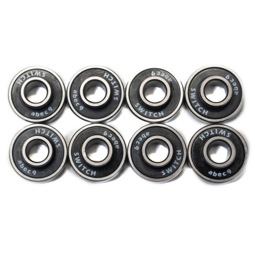 Łożyska kulowe ABEC 9 marki Switch wykonane zostały z wysokiej jakości stali, zapewniającej doskonałą wytrzymałość i osiągi. Standard ABEC określa między innymi mimośrodowość czyli okrągłość na torze w pierścieniu wewnętrznym. W tym wypadku maksymalny dopuszczalny mimośród ABEC 9: 0.0006mm. Łożysko dzięki wysokiej jakości wykonania jest jednym z najszybszych łożysk dostępnych na rynku. Tulejki dystansowe zintegrowane