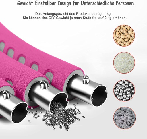 - Konstrukcja z regulacją wagi dla różnych osób: użytkownicy mogą dodawać fasolki lub stalowe kulki, aby dostosować wagę obręczy do ćwiczeń w zależności od pożądanego kształtu ciała i pożądanego wieku. Dostarczamy również 6 zatyczek, aby zapobiec wyciekowi wypełniacza. Początkowa waga produktu to 1 kg. Możesz dowolnie zwiększyć wagę DIY do 2 kg w zależności od poziomu.