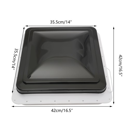 - Szerokie zastosowania: ten świetlik wentylacyjny jest uniwersalny, można go zainstalować w dowolnym miejscu, w którym trzeba wypełnić otwory, o ile otwór twojego samochodu kempingowego wynosi 14*14 cali.