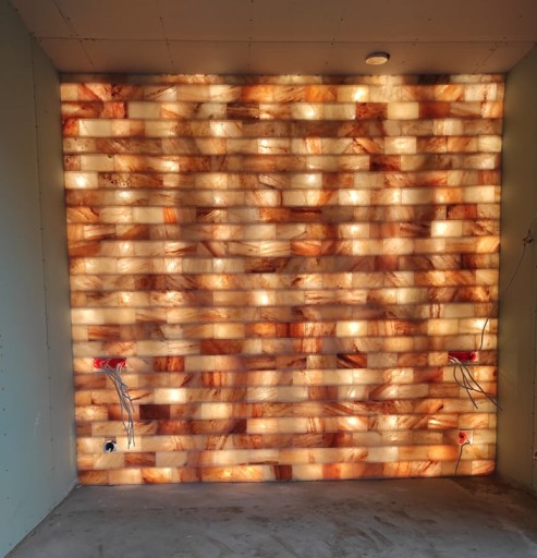 Ściany solne wykonana jest z oryginalnych himalajskich cegieł solnych importowanych przez naszą firmę z Pakistanu.