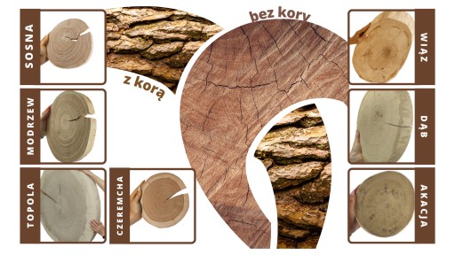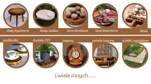 Oferujemy szeroki asortyment drewnianych plastrów z rozmaitych gatunków drzew, jak również gotowe produkty i realizacje.
