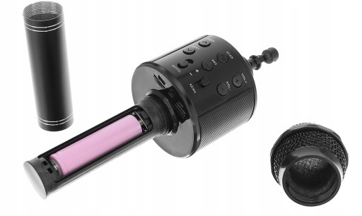 Mikrofon z dwoma głośnikami, umożliwia odsłuchiwanie oraz nagrywanie piosenek; łączy się z urządzeniami zewnętrznymi (tj. telefon, tablet, telewizor SMART z systemem operacyjnym ANDROID lub IOS) poprzez Bluetooth 4.0 lub znajdujący się w zestawie kabel.