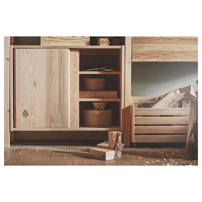 - Solidna lita sosna w systemie przechowywania IVAR ma naturalne różnice słojów, koloru i struktury powierzchni, które nadają każdemu meblowi niepowtarzalny wygląd.
