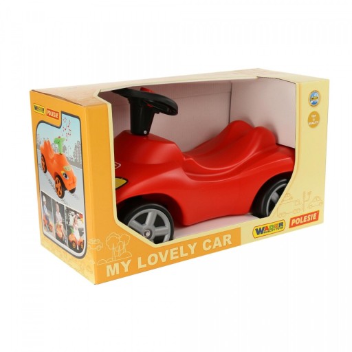 Wyposażony jest w szerokie koła oraz kierownicę z klaksonem.