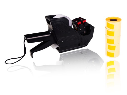 Do metkownicy przeznaczone są uniwersalne metki w białym lub kolorowym wariancie. W oferowanym zestawie znajduje się metkownica wraz z rolką metek, zapasowym wałkiem barwiącym i 5 taśmami kolorowymi.