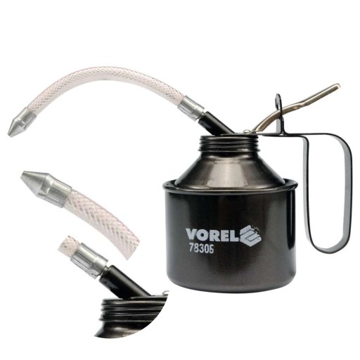 Oliwiarka ręczna z wężykiem.o pojemności 200 ml. Oliwiarka wykonana jest z metalu. Posiada pompkę, wężyk oraz uchwyt do trzymania. Do smarowania mechanizmów przy pomocy oleju. Zastosowanie: - warsztat - garaż