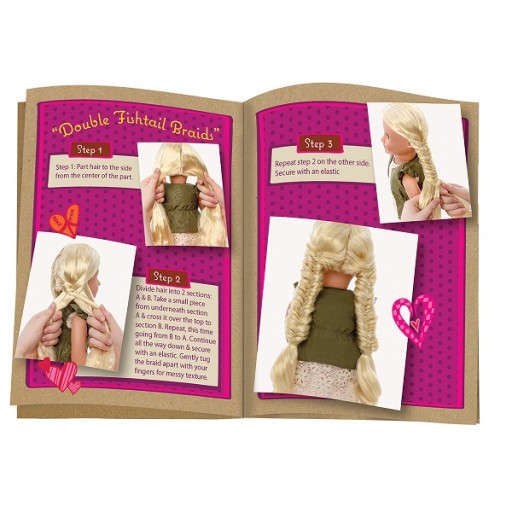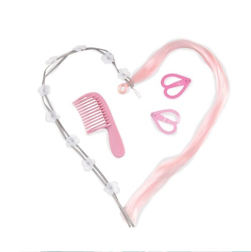 - W zestawie znajduje się: lalka z długimi włosami, sukienka z koronki, kamizelka, bielizna, sandały rzymianki, kolorowe dopinane pasemko, dopinane pasemko z kwiatami w stylu boho, 2 metalowe spinki w kształcie serca, grzebień.