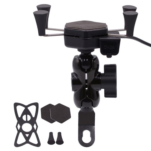 ДЕРЖАТЕЛЬ ДЛЯ ТЕЛЕФОНА ЗАРЯДКА USB 2.1А СКУТЕР МОТОЦИКЛ ПОД ЗЕРКАЛО СТАБИЛЬНЫЙ