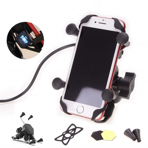✅ Uchwyt typu X z 4 ramionami zakończonymi gumowymi chwytakami, ładowarką USB, włącznikiem i kablem