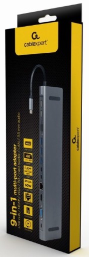 CableExpert USB-C 9 w 1 z portami USB 2.0 oraz 3.0, HDMi (UHD 4K 30 Hz) i VGA (Full HD), złączem słuchawkowym audio stereo 3,5 mm, czytnikami kart SD/microSD, Gigabit Lan i obsługą ładowania USB Type-C Power Delivery 60 W. Rozszerz jedno złącze USB-C na 9 różnych portów do wygodnej pracy, z których możesz korzystać równocześnie rozszerzając swoje możliwości. Dzięki adapterowi wygoda oraz produktywność z pracy szybko wzrośnie. Wystarczy podłączyć laptopa (bez potrzeby instalowania sterowników) i czerpać korzyści z szybkiego ładowania, przesyłania danych, połączenia z internetem za pośrednictwem szybkiej sieci Gigabit oraz obrazu i dźwięku - a wszystko to za pomocą jednego urządzenia. Trwała metalowa obudowa zapewnia wystarczającą odporność i trwałość nawet podczas częstych podróży.