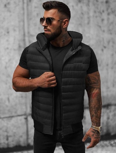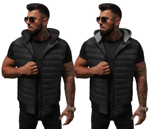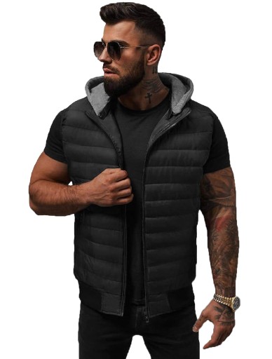 KAMIZELKA MĘSKA BEZRĘKAWNIK CZARNA PIKOWANA KAPTUR LEKKA WIOSENNA roz.L