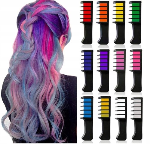 - 12 kolorowych kredek do włosów do wyboru.