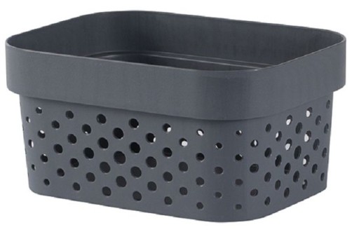 Popularne pojemniki ażurowe Infinity, pasujące do każdego wnętrza. Pojemniki zostały wyposażone w małe otwory na palce po obu stronach, co pomaga w ich przenoszeniu. Występują na innych naszych aukcjach w kilku rozmiarach oraz w kilku, atrakcyjnych kolorach. Chropowata powierzchnia ogranicza przemieszczenie się przedmiotów podczas przenoszenia pojemnika. Dzięki licznym otworom pojemnik można z powodzeniem używać w łazience, bądź kuchni. Pojemnik jest bez pokrywki.