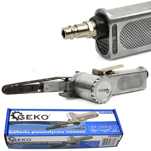 Pneumatyczna szlifierka taśmowa na pas 10x330mm. Zasilana poprzez strumień sprężonego powietrza. Doskonale sprawdzi się podczas szlifowanie w trudno dostępnych miejscach. Wyposażona w napinacz teleskopowy oraz funkcję szybkiej i beznarzędziowej wymiany taśmy.