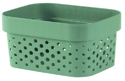 Popularne pojemniki ażurowe Infinity, pasujące do każdego wnętrza. Pojemniki zostały wyposażone w małe otwory na palce po obu stronach, co pomaga w ich przenoszeniu. Występują na innych naszych aukcjach w kilku rozmiarach oraz w kilku, atrakcyjnych kolorach. Chropowata powierzchnia ogranicza przemieszczenie się przedmiotów podczas przenoszenia pojemnika. Dzięki licznym otworom pojemnik można z powodzeniem używać w łazience, bądź kuchni. Pojemnik jest bez pokrywki.