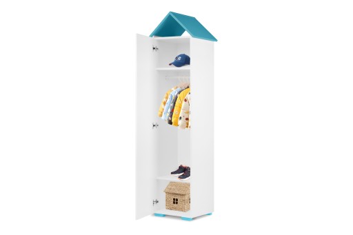 Bajkowy komplet mebli w skład, którego wchodzi regał w kształcie domku, regał, komoda i szafa ubraniowa z kolekcji z kolekcji Pabis. Komplet doskonale nada się zarówno do pokoju dziecięcego. Drewnopodobny laminat w białym kolorze, prosta konstrukcja podkreślają modny i nowoczesny styl zestawu. Pojemny regał, doskonale nada się do zabawek oraz innych dziecięcych akcesoriów. Oryginalna stylizacja zestawu sprawia, że będzie ona piękną ozdobą dziecięcego pokoju. Cały zestaw jest praktycznym rozwiązaniem, które doceni każde dziecko.