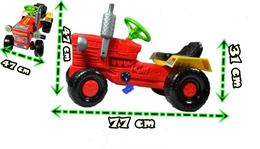 - Traktor posiada napęd na pedałka