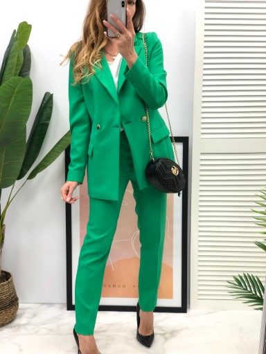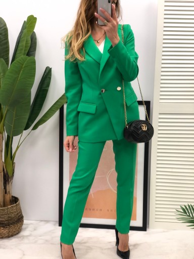 Markowy garnitur wykonany z eleganckiego materiału będący idealną alternatywą dla sukienki. Niesamowity komfort noszenia. Materiał premium - szyty w Polsce.
