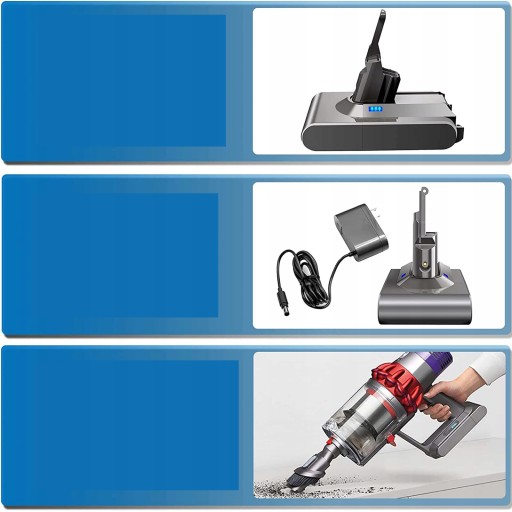 Zapasowy akumulator do baterii Dyson V8: Akumulator litowo-jonowy, napięcie 21,6 V, pojemność 4600 mAh. Brak efektu pamięci, ładowanie i rozładowywanie na żądanie bez utraty pojemności.