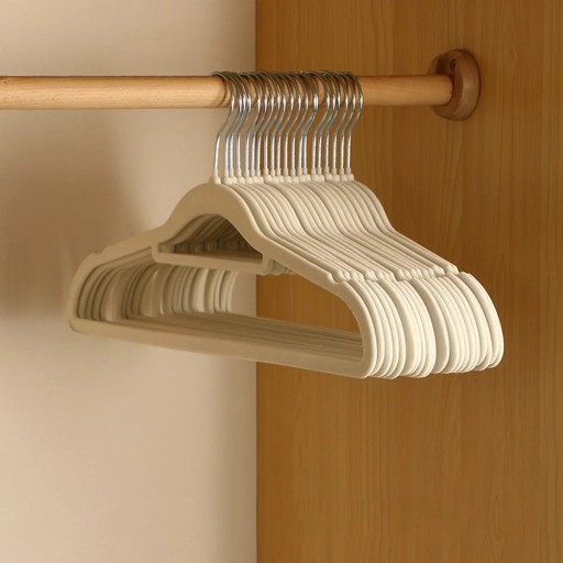 Welurowe wieszaki wykonane z najwyższej jakości materiału zapewniającego antypoślizgową powierzchnię. Twoje ubrania zawsze będą bezpieczne i elegancko wyeksponowane.