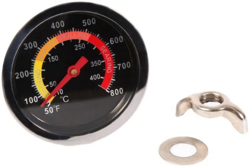 - Specjalny gwint z nakrętką umieszczone w sondzie pozwoli Ci na łatwy montaż termometru na ściance lub drzwiczkach wędzarni.