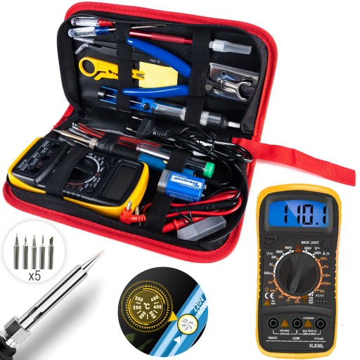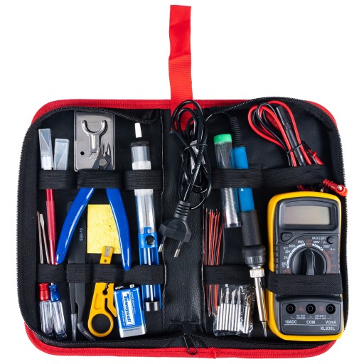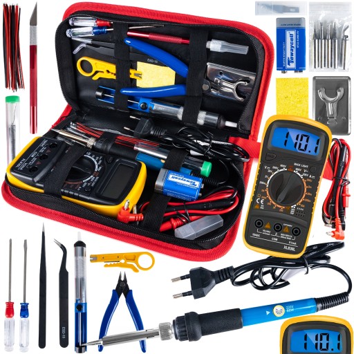 Duży zestaw narzędzi elektrycznych z lutownicą i multimetrem - 40 elementów w zestawie!
